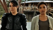 Alicia was the teacher for the survival skill lessons. She helped defend the colony after a meteor explosion caused an electromagnetic pulse and disabled the colony's technology. While Taylor was tracking the Sixer spy, she helped to chase the dragonfly that the spy was using to communicate with the Sixers. Washington helped Jim strengthen the colony's defenses and install a security camera. While viewing the security footage, she saw Skye sneaking out of the colony.