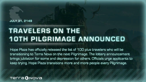 There was also an "Enter The Lottery" button that linked to the Live Terra Nova website.