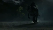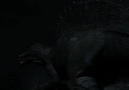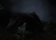 - The scene where the empirosaur was driven off by fire bears a resemblance to a scene near the end of the film Jurassic Park III, where a Spinosaurus was driven off by a fire induced by a flare gun being fired into a river (the river was set on fire because the Spinosaurus have broke the fuel tank on the boat earlier).