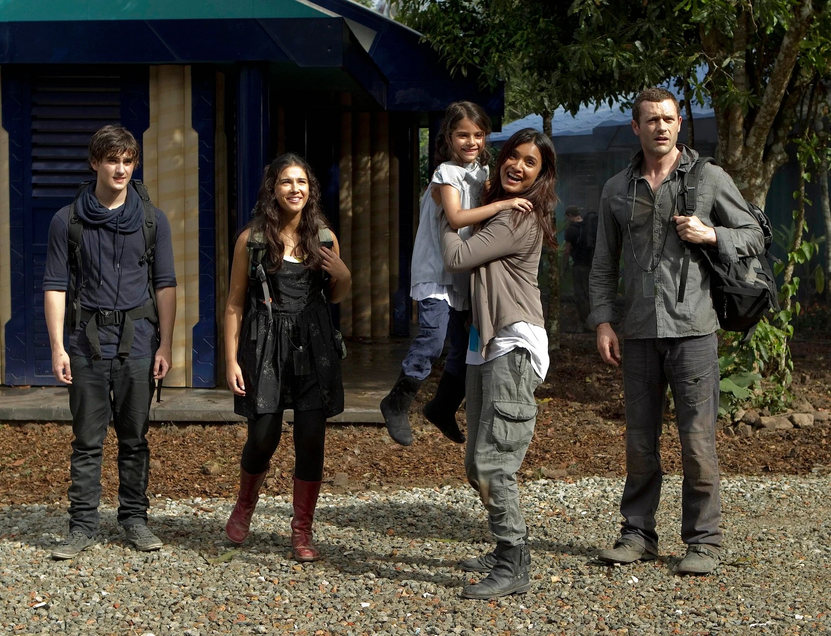 After the Shannons are reunited after walking through the time portal, a soldier almost runs a knife through Jim's bag and Zoe is discovered hidden in it alive with a rebreather, successfully brought in despite what they were told was allowed.