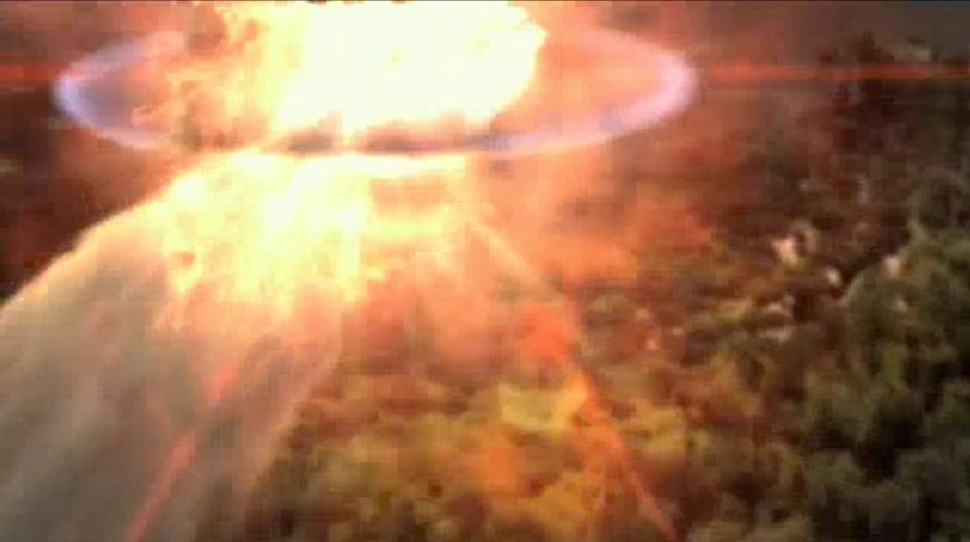 A large meteor burns through the atmosphere over Terra Nova, letting off an EMP and knocking out all their technology. It proceeds to explode and does significant damage to the ground below. ("Nightfall")