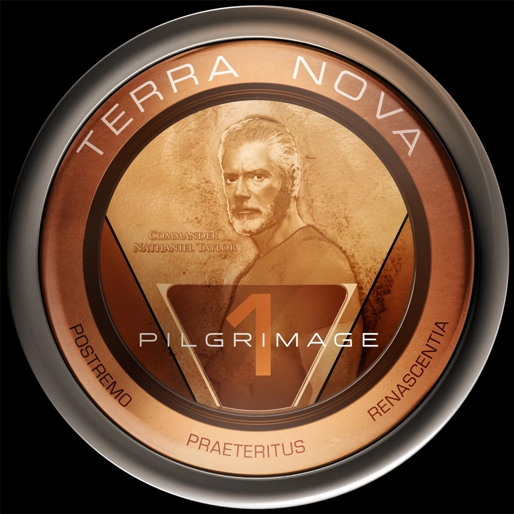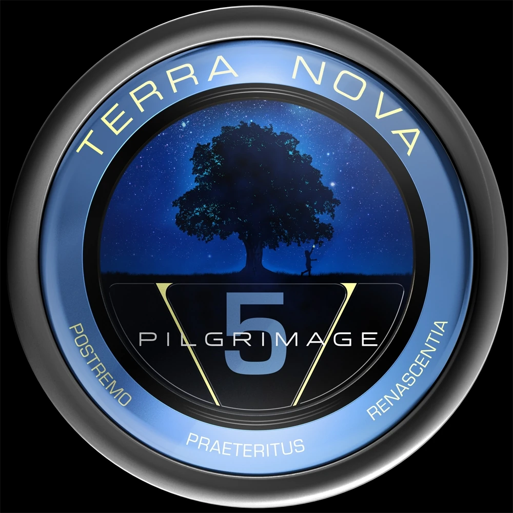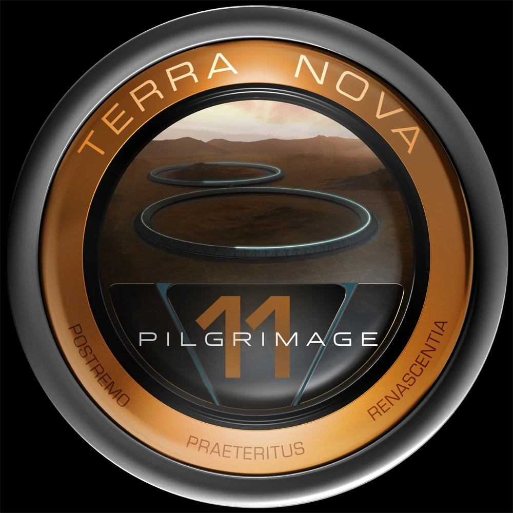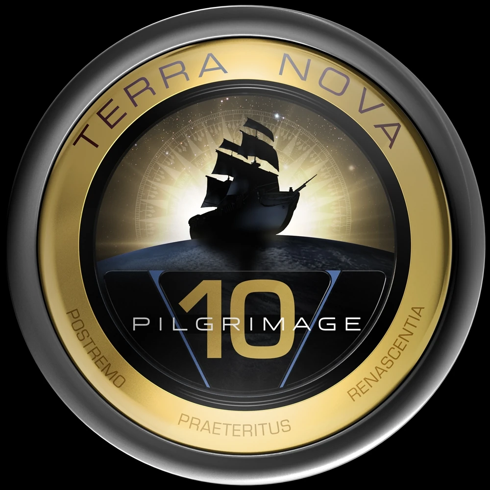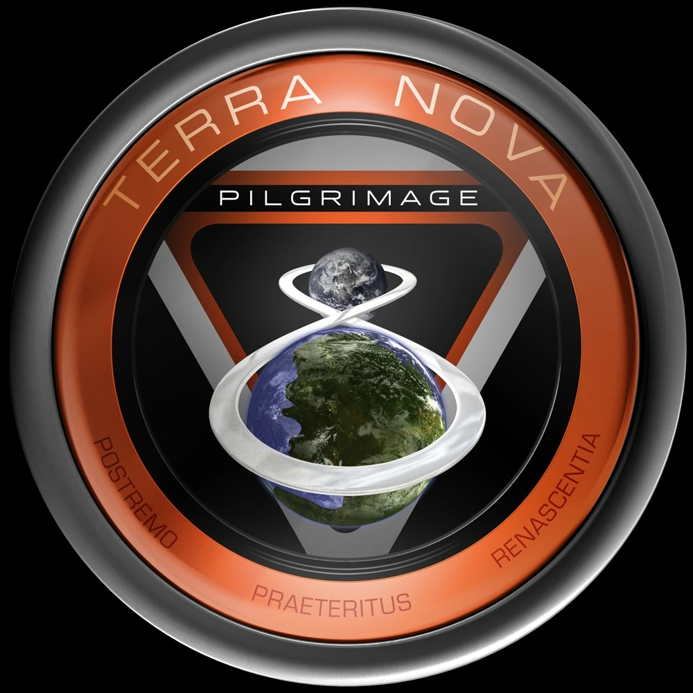 - The Eighth Pilgrimage badge features a large "8" drifting in space. Its upper circle contains the Earth from our universe. Its lower circle contains the Earth from Terra Nova, with a green supercontinent. This is very similar to the mission insignia of Apollo 8. Because the number of the Pilgrimage is used in the artwork, the overall design of the badge is different than the other badges. It has a light brown frame.