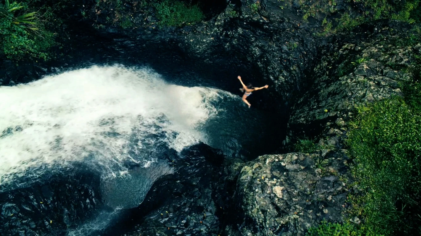 Skye jumping off the waterfall